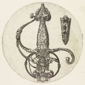 Pièce appartenant à une série de six gardes d'épées. On conserve plusieurs épées de parade et dague orfévrées qui servent à faire valoir certains des modèles de Woeiriot. Bibliographie : Olivier Renaudeau et al. dans 'Armures des princes d'Europe. Sous l'égide de Mars', Paris, Musée de l'Armée, 16 mars -26 juin 2011, p. 326; Thomas Mentrel dans 'Arts et humanisme. Lyon Renaissance', Musée des Beaux-Arts de Lyon, 23 octobre 2015 - 26 janvier 2016, n°242 cat. dématérialisé en ligne, p. 180.