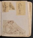 Album Gatteaux dit "musée imaginaire". Album factice à couverture en vélin. Feuillets de deux papiers différents du fait de l'usage d'un papier plus fort et moins homogène pour le premier feuillet, puis du folio 36 recto au folio 40 verso. Au total 599 dessins répartis sur les premiers 134 feuillets. 596 dessins collés sur les pages de l'album et 3 dessins exécutés à même les pages de l'album. 592 dessins rapportés exécutés sur calque et 4 dessins rapportés exécutés sur papier. 23 dessins exécutés uniquement au graphite sur papier ou calque. 24 dessins exécutés à l'encre brune et/ou noire sur traces de graphite.552 dessins exécutés à l'encre seule, majoritairement brune mais de qualités différentes, parfois plus grise, d'autres fois plus noire. Plusieurs ensembles de feuillets vierges : du folio 30 recto au folio 35 verso inclus ; du folio 65 verso au feuillet 68 recto inclus ; du feuillet 72 verso au 75 verso inclus ; du feuillet 129 recto au feuillet 130 verso inclus. Feuillets vierges ou coupés à partir du folio 135 verso. Annotation à la plume et à l'encre brune de la main de Jacques-Edouard Gatteaux sur la contre-garde de la couverture: " E. Gatteaux. Rue de Bourbon n° 36 / Paris". Dimensions de l'album : H. 21 cm.; L. 17 cm. ; épaisseur du dos environ 3,2 cm.