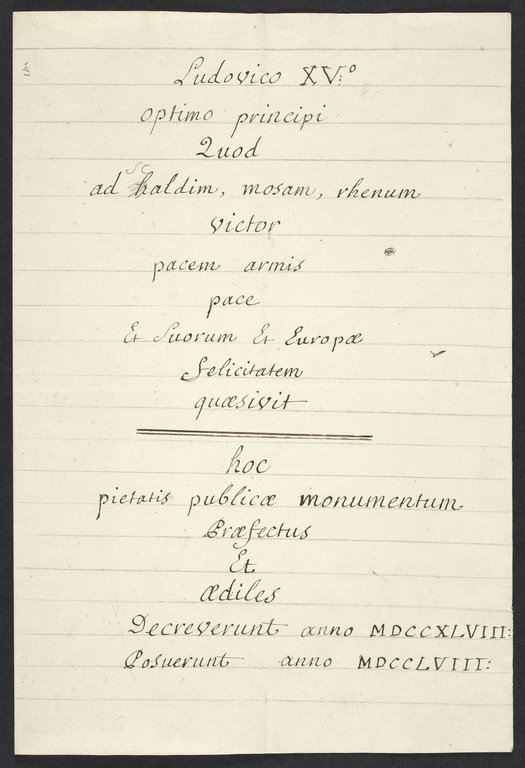 Texte des deux d'inscription pour la statue équestre de Louis XV