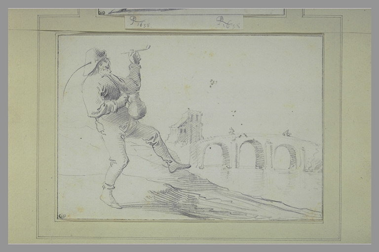Paysan dansant dans un paysage, près d'un fleuve