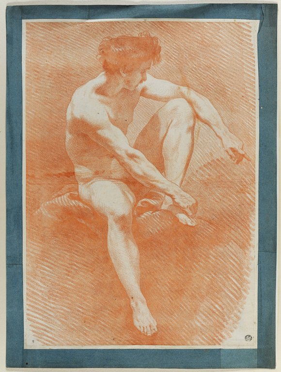 Homme nu, assis, tourné vers la droite, la jambe gauche pliée