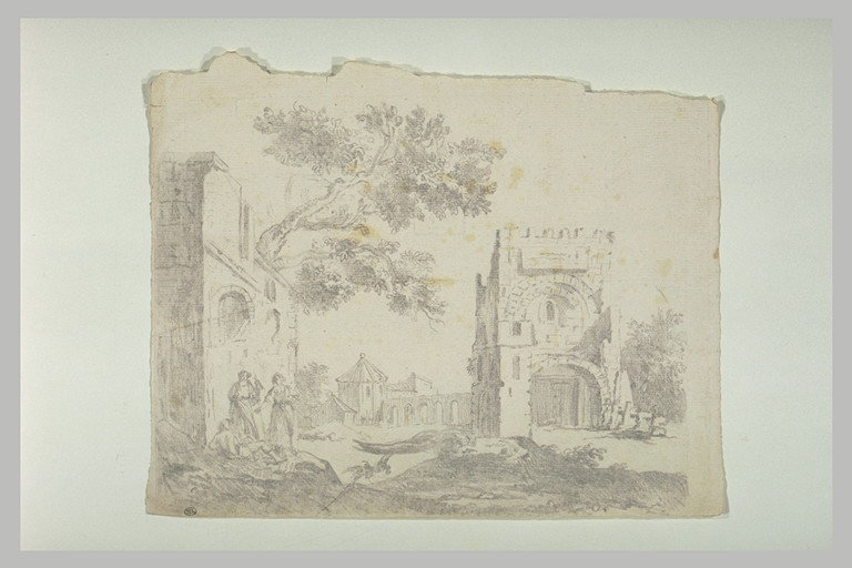 Figures parmi des bâtiments à demi ruinés