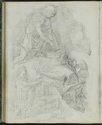 Album à couverture cartonnée, verte marbrée bleu, dos de toile verte avec inscription dorée : A C G lemonnier / Croquis. Double numérotation des feuillets.