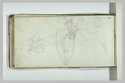 Album semi-factice, relié en papier marbré, aux coins et au dos de peau verte. Contient des croquis d'animaux, de vases d'après l'antique, et des études de ciel. Les folios 39, 40 et 42 sont vierges. Trace de folio manquant entre les folios 25 et 26, 31 et 32, 37 et 38, et 4 manquants entre les folios 39 et 40. Partie manquante aux folios 3, 8 et 11 (bord latéral droit). H. 0,140 ; L. 0,265.