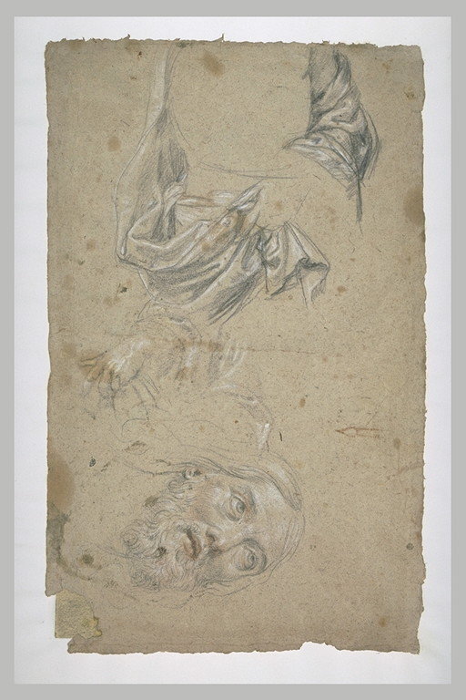 Etudes d'une tête de vieillard, et de draperies
