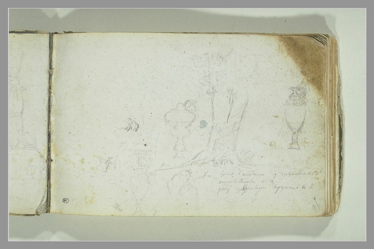 Croquis divers et note manuscrite