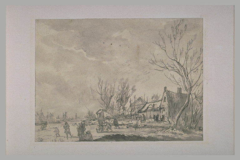 En hiver, patineurs sur un canal gelé