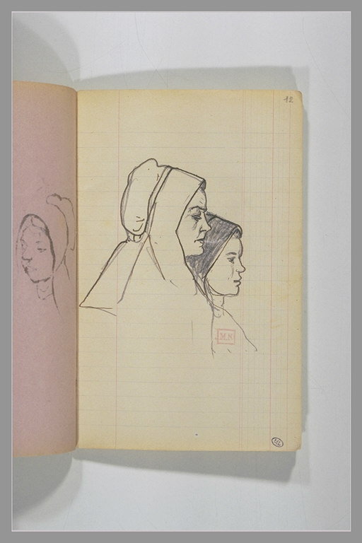 Etude d'une tête de femme et d'une tête de jeune fille, en costume breton