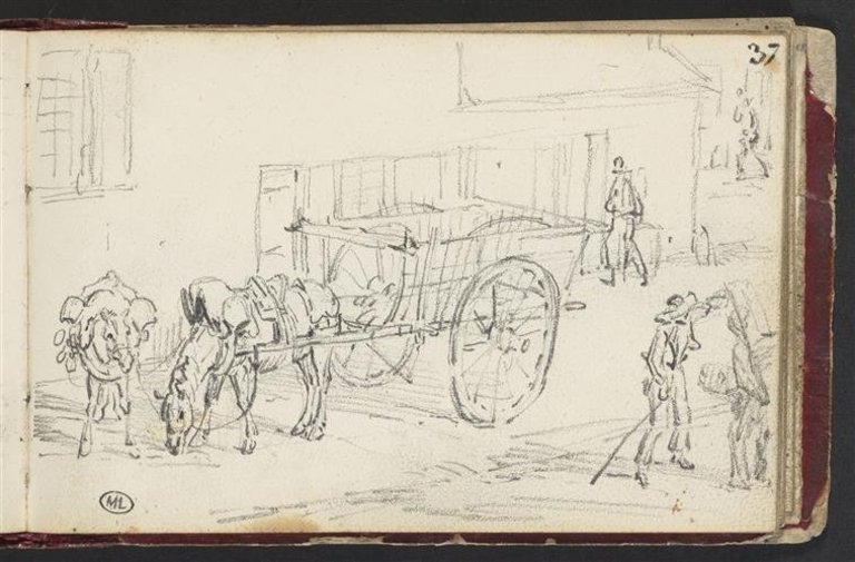 Scène de rue avec une charrette