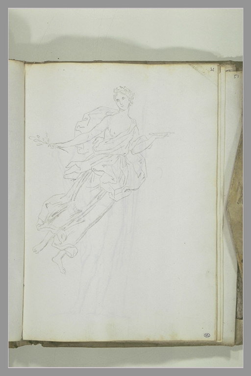 Figure volante tenant un plat et une brindille