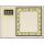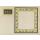 A gauche, panneau vertical en deux parties, celle du haut avec trois figures féminines drapées sur fond noir, celle du bas non décorée. A droite grand panneau carré à bande ornée de figures féminines drapées, d'oiseaux et d'arbres, bleus sur fond jaune.