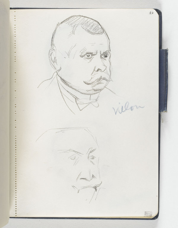 En haut, tête d'homme, moustachu, de trois quarts à droite. En bas, croquis inachevé d'une tête d'homme moustachu, de trois quarts à droite