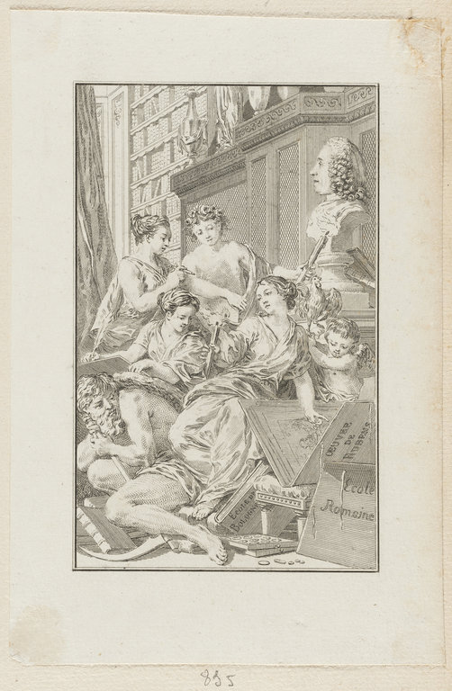 L'Histoire, le Génie du Dessin, le Dieu du Goût et l'Etude rassemblés au pied du Buste de Mr Mariette