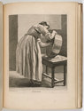 Recueil contenant les "Etudes prises dans le bas-peuple ou les Cris de Paris",cinq suites, d'après les dessins d'Edmé Bouchardon, gravés par le comte de Caylus et Etienne Fessard, à Paris, 1737-1746. H : 00,328 m L : 00,252 m D : 00,027 m Livre ouvert : 00,493 m