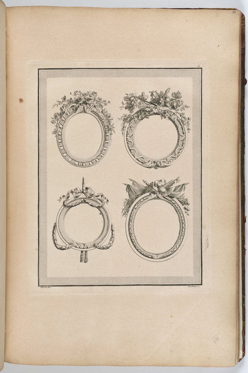 Oeuvres contenant un recueil de trophées, attributs, cartouches, vases, fleurs ornemens Et plusieurs Desseins agréables pour broder des Fauteuils ; Composés et dessinés par Ranson, et gravés par Berthaut et Voysard. 1778.