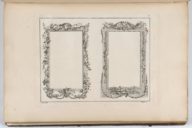Oeuvres contenant un recueil de trophées, attributs, cartouches, vases, fleurs ornemens Et plusieurs Desseins agréables pour broder des Fauteuils ; Composés et dessinés par Ranson, et gravés par Berthaut et Voysard. 1778.