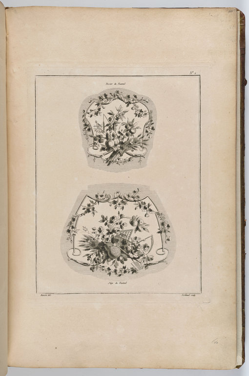 Oeuvres contenant un recueil de trophées, attributs, cartouches, vases, fleurs ornemens Et plusieurs Desseins agréables pour broder des Fauteuils ; Composés et dessinés par Ranson, et gravés par Berthaut et Voysard. 1778.