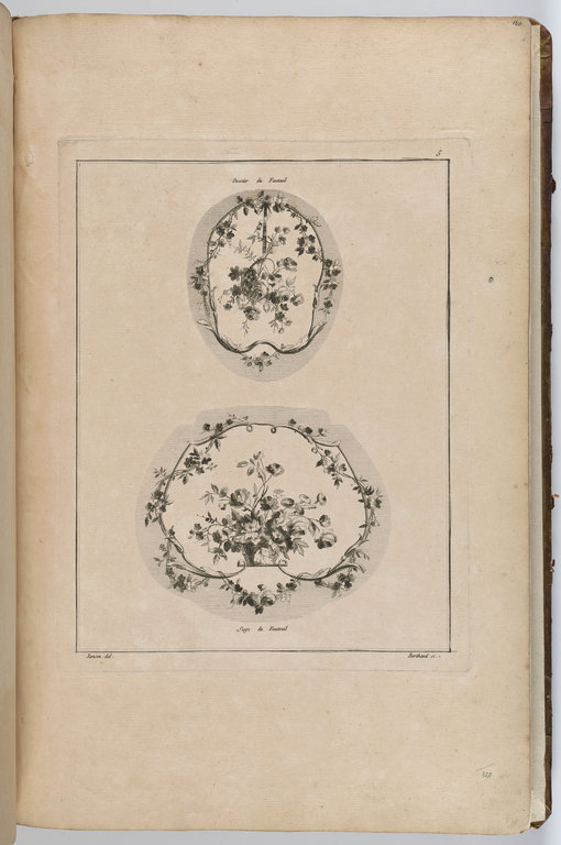 Oeuvres contenant un recueil de trophées, attributs, cartouches, vases, fleurs ornemens Et plusieurs Desseins agréables pour broder des Fauteuils ; Composés et dessinés par Ranson, et gravés par Berthaut et Voysard. 1778.