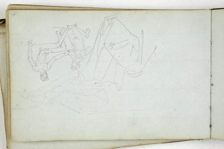 Deux hommes nus, l'un assis tendant la main à un autre agenouillé