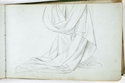 Crayon noir, lavis, plume. Signé 'PJF' en deuxième de couverture. Album recouvert de parchemin vert, comportant 55 feuillets et deux petits dessins détachés. 'Chaque folio a été annoté au verso avec un numéro commençant par '1102.A'. Ces numéros vont de 1102.A.1 à 1102.A.56, ils correspondent aux 54 folios de l'album plus les deux dessins non reliés (une femme drapée et un fauteuil) conservés dans l"album. Si l'on de réfère aux photo de l'album faites par François Lauginie (sans date de prise de vue) sur lesquelles ne figurent pas ces numéros, il semblerait donc que ces ces numéros, inscrits au crayon à papier, aient été rajoutés récemment. Aucune dégradation par rapport au récolement précédent h'est à signaler' (Rapport de mission de récolement effectué par Mélanie Budin (SR Louvre), 20-21 mai 2019).