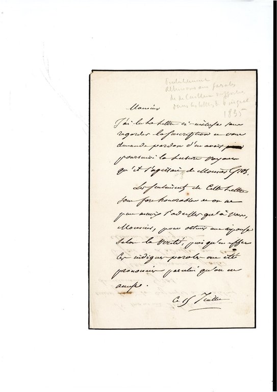 15 juillet (1835), sans lieu, à Monsieur (Delestre)