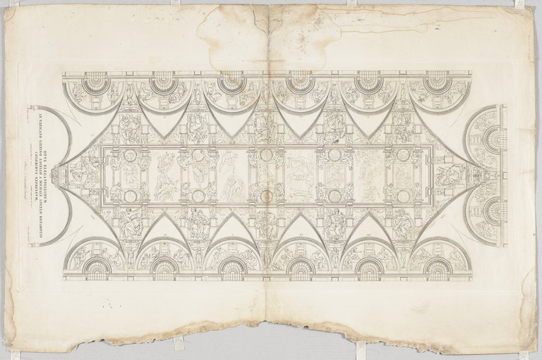 Croquis de personnages au dos d'une lithographie du plafond de la chapelle Sixtine