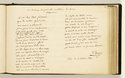 Liber amicorum de la princesse de Salm, composé entre le 1er janvier 1809 et 1841. Reliure d'origine en chagrin ébène, plats ornés d'un encadrement à froid. Sur le plat supérieur, inscription en lettres dorées "Album", surmontée du chiffre "C.S" couronné. Dos lisse orné de filets à froid, doublure et gardes de papier moiré, tranches dorées (reliure d'époque). Dédié par Constance Salm à ses amis et "A TOUS CEUX QUI AIMENT OU CULTIVENT LES LETTRES, LES SCIENCES OU LES ARTS". Toutes les pages sont montées sur onglet. Environ 331 pages numérotées à l'encre rouge et au crayon de 1 à 186 et 189 à 331, entre les pages 186 et 189, 20 feuillets lettrés A à T. Manquent les pages 125, 126, 149, 150, 187, 188, 265, 266. Pas de page 80. Sont vierges les pages 1, 6, 34, 68, 71, 78, 92, 100, 104, 106, 110, 114, 116, 117, 130, 138, 140, 141, 144, 146, 148, 152, 153, 156, 157, 184, 185, 198, 208, 212, 222, 224, 230, 232, 234, 236, 238, 246, 250, 254, 258, 286, 294, 298, 300, 302, 304, 306, 307, 310, 314, 316, 322, 324, 326, 327, 330. Une feuille volante se rapportant au dessin du folio 59. Petit in-8 oblong : Hauteur : 13,5 cm ; Longueur : 21,5 cm.