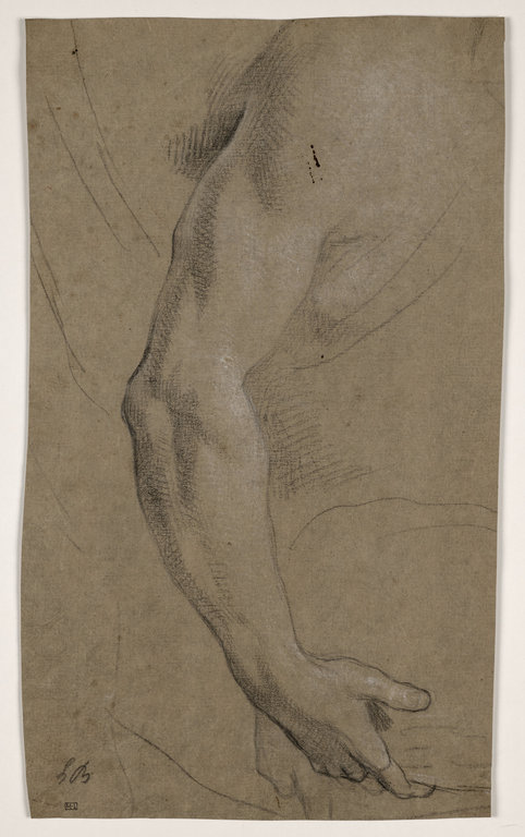 Etude d'un bras masculin droit, portant un objet (folio 80)