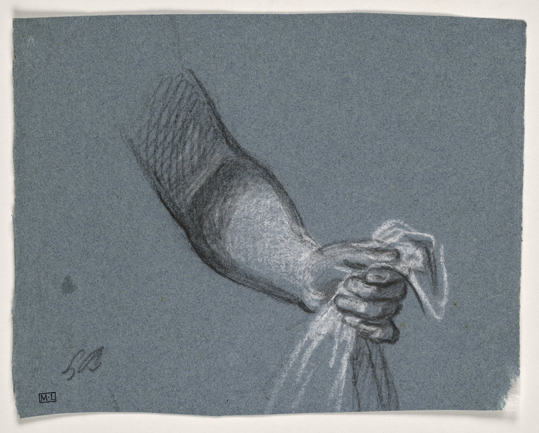 Main tenant une draperie (folio 161, au milieu à gauche)