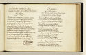 Liber amicorum de la princesse de Salm, composé entre le 1er janvier 1809 et 1841. Reliure d'origine en chagrin ébène, plats ornés d'un encadrement à froid. Sur le plat supérieur, inscription en lettres dorées "Album", surmontée du chiffre "C.S" couronné. Dos lisse orné de filets à froid, doublure et gardes de papier moiré, tranches dorées (reliure d'époque). Dédié par Constance Salm à ses amis et "A TOUS CEUX QUI AIMENT OU CULTIVENT LES LETTRES, LES SCIENCES OU LES ARTS". Toutes les pages sont montées sur onglet. Environ 331 pages numérotées à l'encre rouge et au crayon de 1 à 186 et 189 à 331, entre les pages 186 et 189, 20 feuillets lettrés A à T. Manquent les pages 125, 126, 149, 150, 187, 188, 265, 266. Pas de page 80. Sont vierges les pages 1, 6, 34, 68, 71, 78, 92, 100, 104, 106, 110, 114, 116, 117, 130, 138, 140, 141, 144, 146, 148, 152, 153, 156, 157, 184, 185, 198, 208, 212, 222, 224, 230, 232, 234, 236, 238, 246, 250, 254, 258, 286, 294, 298, 300, 302, 304, 306, 307, 310, 314, 316, 322, 324, 326, 327, 330. Une feuille volante se rapportant au dessin du folio 59. Petit in-8 oblong : Hauteur : 13,5 cm ; Longueur : 21,5 cm.