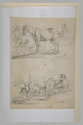 Feuille d'études avec chiens, figures et chevaux