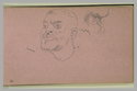 Album cartonné recouvert de papier vert, à dos de peau noire, composé de 25 feuillets (dont deux pages de garde rose) numérotés de 1 à 25. traces de feuillets manquants. Sur le contreplat de devant, étiquette collée avec l'annotation à la mine de plomb : "Croquis divers". Cachet de cire rouge de la vente de l'atelier de Delacroix. Cartons de couverture cassés. Folios 16 et 19 vierges. Trace de folio manquant entre les folios 20 et 21 et 24 et 25. H. 0,125 ; L. 0,210.