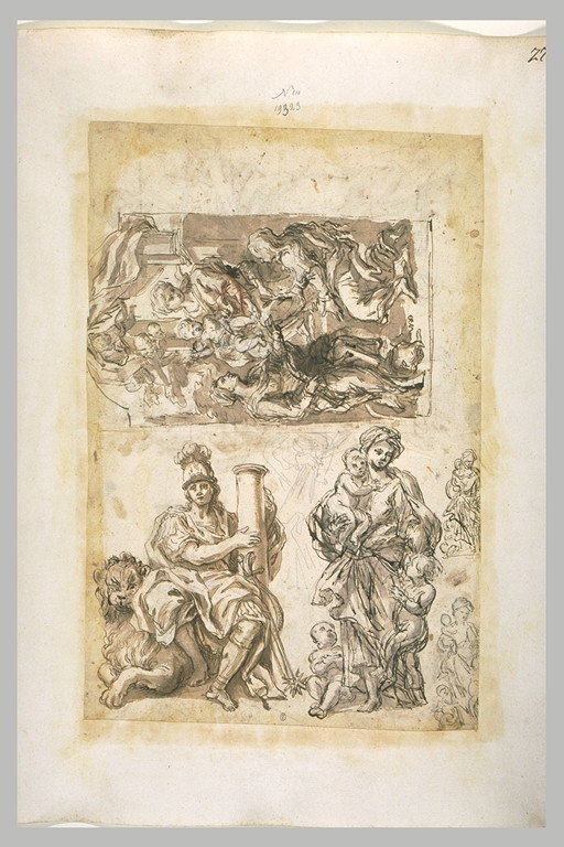 La Charité, la Force ; sainte Madeleine et une sainte adorant la Vierge