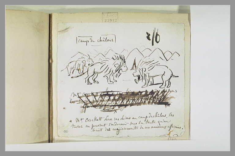Caricature : un troupeau de lions devant des tentes