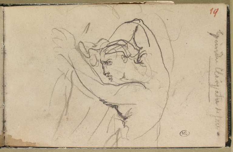 Femme couchée sur le ventre, en buste, tournée vers la gauche