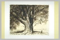 Paysage dominé par un arbre à cinq fortes branches, et au centre un paysan