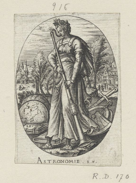Les principales sciences plus Minerve et la Sagesse, représentées par des femmes debout dans des paysages - Astronomie