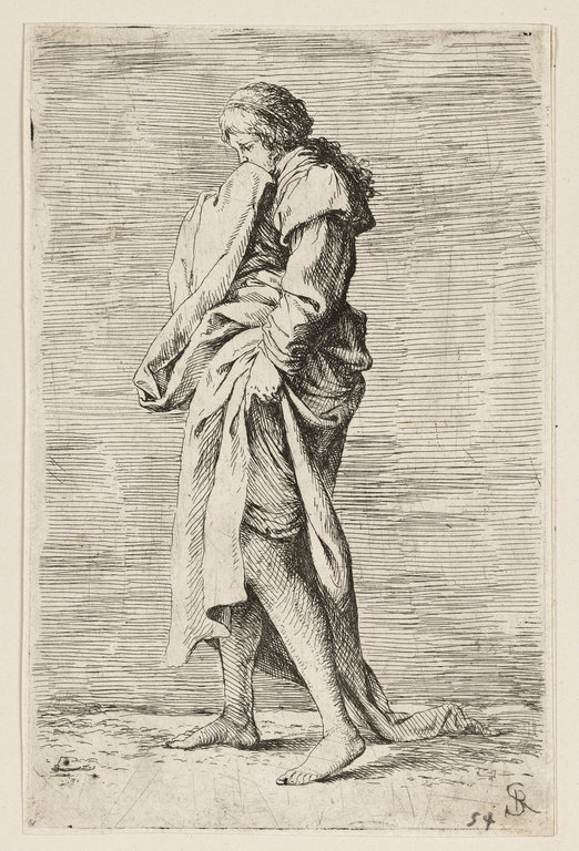 Série "Figurines" : une femme enveloppée dans une draperie, tournée vers la gauche