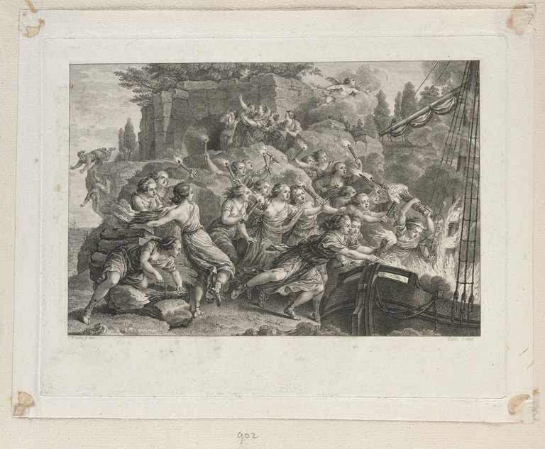Les Nimphes de Calypso mettent le feu au vaisseau de Mentor qui jette Télémaque à la mer & s'y précipite après lui