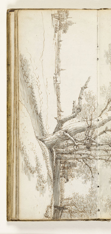 Paysage avec arbres et au loin les églises de Oegstgeest, Valkenburg et Rijnsburg