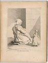 Recueil contenant les "Etudes prises dans le bas-peuple ou les Cris de Paris",cinq suites, d'après les dessins d'Edmé Bouchardon, gravés par le comte de Caylus et Etienne Fessard, à Paris, 1737-1746. H : 00,328 m L : 00,252 m D : 00,027 m Livre ouvert : 00,493 m