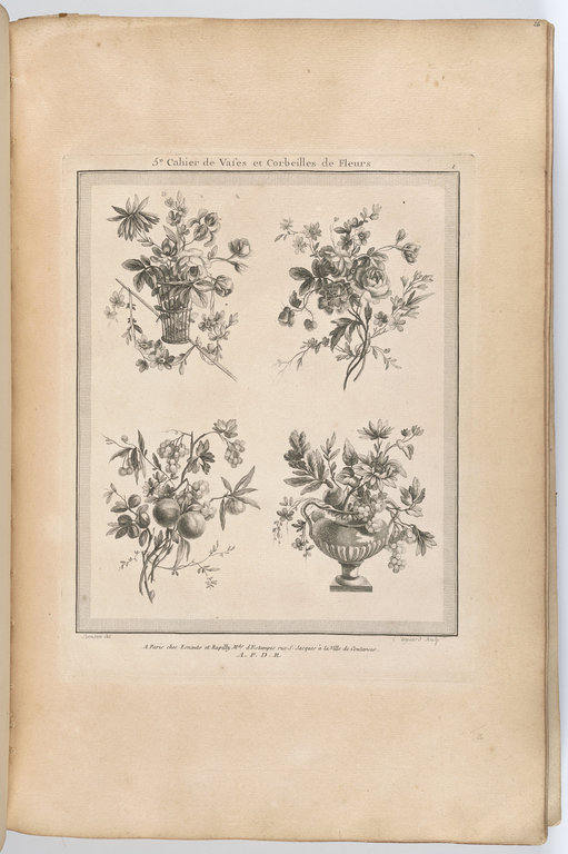 Oeuvres contenant un recueil de trophées, attributs, cartouches, vases, fleurs ornemens Et plusieurs Desseins agréables pour broder des Fauteuils ; Composés et dessinés par Ranson, et gravés par Berthaut et Voysard. 1778.