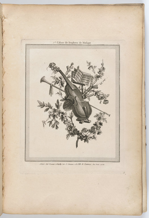 Oeuvres contenant un recueil de trophées, attributs, cartouches, vases, fleurs ornemens Et plusieurs Desseins agréables pour broder des Fauteuils ; Composés et dessinés par Ranson, et gravés par Berthaut et Voysard. 1778.