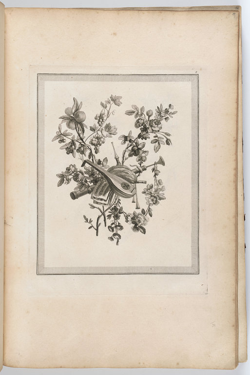 Oeuvres contenant un recueil de trophées, attributs, cartouches, vases, fleurs ornemens Et plusieurs Desseins agréables pour broder des Fauteuils ; Composés et dessinés par Ranson, et gravés par Berthaut et Voysard. 1778.