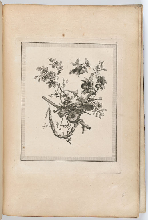 Oeuvres contenant un recueil de trophées, attributs, cartouches, vases, fleurs ornemens Et plusieurs Desseins agréables pour broder des Fauteuils ; Composés et dessinés par Ranson, et gravés par Berthaut et Voysard. 1778.