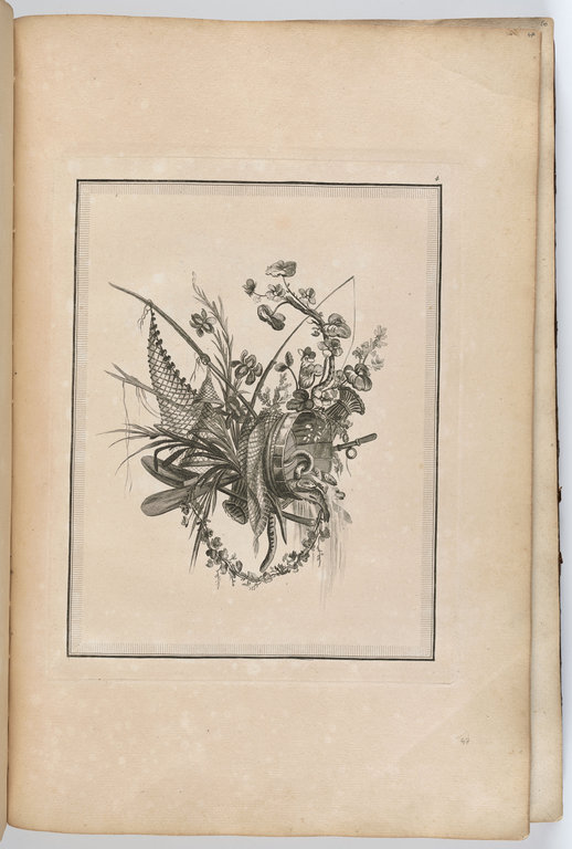 Oeuvres contenant un recueil de trophées, attributs, cartouches, vases, fleurs ornemens Et plusieurs Desseins agréables pour broder des Fauteuils ; Composés et dessinés par Ranson, et gravés par Berthaut et Voysard. 1778.