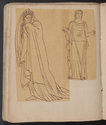 Album Gatteaux dit "musée imaginaire". Album factice à couverture en vélin. Feuillets de deux papiers différents du fait de l'usage d'un papier plus fort et moins homogène pour le premier feuillet, puis du folio 36 recto au folio 40 verso. Au total 599 dessins répartis sur les premiers 134 feuillets. 596 dessins collés sur les pages de l'album et 3 dessins exécutés à même les pages de l'album. 592 dessins rapportés exécutés sur calque et 4 dessins rapportés exécutés sur papier. 23 dessins exécutés uniquement au graphite sur papier ou calque. 24 dessins exécutés à l'encre brune et/ou noire sur traces de graphite.552 dessins exécutés à l'encre seule, majoritairement brune mais de qualités différentes, parfois plus grise, d'autres fois plus noire. Plusieurs ensembles de feuillets vierges : du folio 30 recto au folio 35 verso inclus ; du folio 65 verso au feuillet 68 recto inclus ; du feuillet 72 verso au 75 verso inclus ; du feuillet 129 recto au feuillet 130 verso inclus. Feuillets vierges ou coupés à partir du folio 135 verso. Annotation à la plume et à l'encre brune de la main de Jacques-Edouard Gatteaux sur la contre-garde de la couverture: " E. Gatteaux. Rue de Bourbon n° 36 / Paris". Dimensions de l'album : H. 21 cm.; L. 17 cm. ; épaisseur du dos environ 3,2 cm.