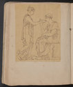 Album Gatteaux dit "musée imaginaire". Album factice à couverture en vélin. Feuillets de deux papiers différents du fait de l'usage d'un papier plus fort et moins homogène pour le premier feuillet, puis du folio 36 recto au folio 40 verso. Au total 599 dessins répartis sur les premiers 134 feuillets. 596 dessins collés sur les pages de l'album et 3 dessins exécutés à même les pages de l'album. 592 dessins rapportés exécutés sur calque et 4 dessins rapportés exécutés sur papier. 23 dessins exécutés uniquement au graphite sur papier ou calque. 24 dessins exécutés à l'encre brune et/ou noire sur traces de graphite.552 dessins exécutés à l'encre seule, majoritairement brune mais de qualités différentes, parfois plus grise, d'autres fois plus noire. Plusieurs ensembles de feuillets vierges : du folio 30 recto au folio 35 verso inclus ; du folio 65 verso au feuillet 68 recto inclus ; du feuillet 72 verso au 75 verso inclus ; du feuillet 129 recto au feuillet 130 verso inclus. Feuillets vierges ou coupés à partir du folio 135 verso. Annotation à la plume et à l'encre brune de la main de Jacques-Edouard Gatteaux sur la contre-garde de la couverture: " E. Gatteaux. Rue de Bourbon n° 36 / Paris". Dimensions de l'album : H. 21 cm.; L. 17 cm. ; épaisseur du dos environ 3,2 cm.
