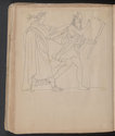 Album Gatteaux dit "musée imaginaire". Album factice à couverture en vélin. Feuillets de deux papiers différents du fait de l'usage d'un papier plus fort et moins homogène pour le premier feuillet, puis du folio 36 recto au folio 40 verso. Au total 599 dessins répartis sur les premiers 134 feuillets. 596 dessins collés sur les pages de l'album et 3 dessins exécutés à même les pages de l'album. 592 dessins rapportés exécutés sur calque et 4 dessins rapportés exécutés sur papier. 23 dessins exécutés uniquement au graphite sur papier ou calque. 24 dessins exécutés à l'encre brune et/ou noire sur traces de graphite.552 dessins exécutés à l'encre seule, majoritairement brune mais de qualités différentes, parfois plus grise, d'autres fois plus noire. Plusieurs ensembles de feuillets vierges : du folio 30 recto au folio 35 verso inclus ; du folio 65 verso au feuillet 68 recto inclus ; du feuillet 72 verso au 75 verso inclus ; du feuillet 129 recto au feuillet 130 verso inclus. Feuillets vierges ou coupés à partir du folio 135 verso. Annotation à la plume et à l'encre brune de la main de Jacques-Edouard Gatteaux sur la contre-garde de la couverture: " E. Gatteaux. Rue de Bourbon n° 36 / Paris". Dimensions de l'album : H. 21 cm.; L. 17 cm. ; épaisseur du dos environ 3,2 cm.