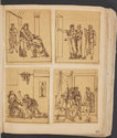 Album Gatteaux dit "musée imaginaire". Album factice à couverture en vélin. Feuillets de deux papiers différents du fait de l'usage d'un papier plus fort et moins homogène pour le premier feuillet, puis du folio 36 recto au folio 40 verso. Au total 599 dessins répartis sur les premiers 134 feuillets. 596 dessins collés sur les pages de l'album et 3 dessins exécutés à même les pages de l'album. 592 dessins rapportés exécutés sur calque et 4 dessins rapportés exécutés sur papier. 23 dessins exécutés uniquement au graphite sur papier ou calque. 24 dessins exécutés à l'encre brune et/ou noire sur traces de graphite.552 dessins exécutés à l'encre seule, majoritairement brune mais de qualités différentes, parfois plus grise, d'autres fois plus noire. Plusieurs ensembles de feuillets vierges : du folio 30 recto au folio 35 verso inclus ; du folio 65 verso au feuillet 68 recto inclus ; du feuillet 72 verso au 75 verso inclus ; du feuillet 129 recto au feuillet 130 verso inclus. Feuillets vierges ou coupés à partir du folio 135 verso. Annotation à la plume et à l'encre brune de la main de Jacques-Edouard Gatteaux sur la contre-garde de la couverture: " E. Gatteaux. Rue de Bourbon n° 36 / Paris". Dimensions de l'album : H. 21 cm.; L. 17 cm. ; épaisseur du dos environ 3,2 cm.